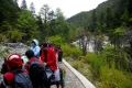 我在冲古寺前的草场转了一下,便和莉莉上仙乃日神山的珍珠海,莉莉感觉没有力气爬上去,就请了一个藏民帮背行李,老胡他们不上去,就骑马回亚丁休息去了;由于莉莉速度太慢,他与藏族民工一起上,我一人独自上了仙乃日的珍珠海,这是座高山湖泊,不太大,是仙乃日山峰血水流下的盘地构成;从冲古寺到珍珠海有1.5公里的上山道,我背几十斤的器材爬上去,累得够呛。